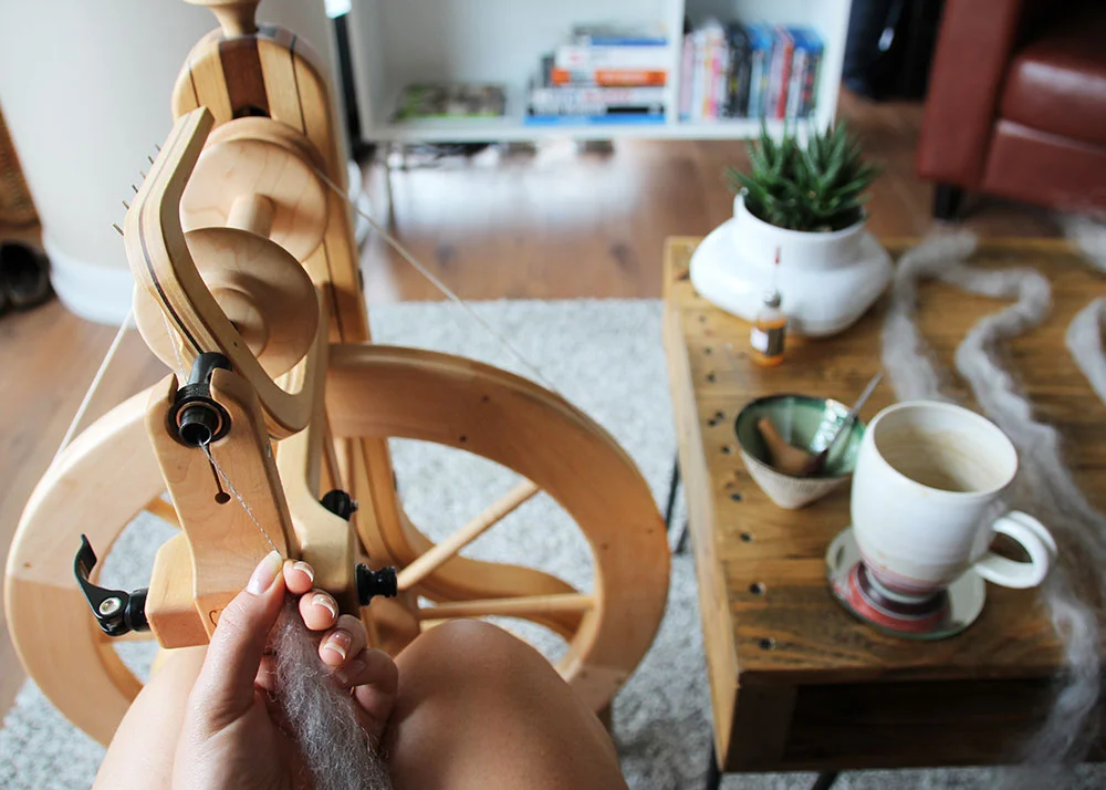 Kate tells me about how she got into knitting and more recently spinning, and her frustrated relationship to sewing. She finds that sewing stresses her out, it can so rigid and she gets really tense when she sits down at a sewing machine. Her approach to spinning has been completely different, more intuitive, less rigid, and she's found this incredibly rewarding.